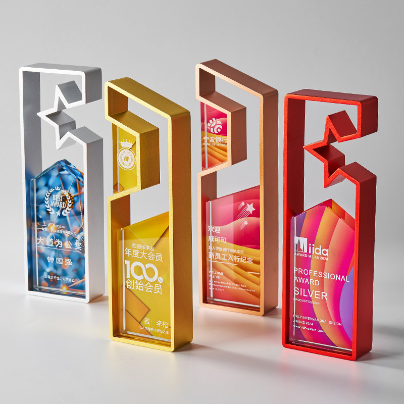 クリスタル彫刻トロフィー制作高級会社年次総会優秀社員メダル周年記念プレゼント