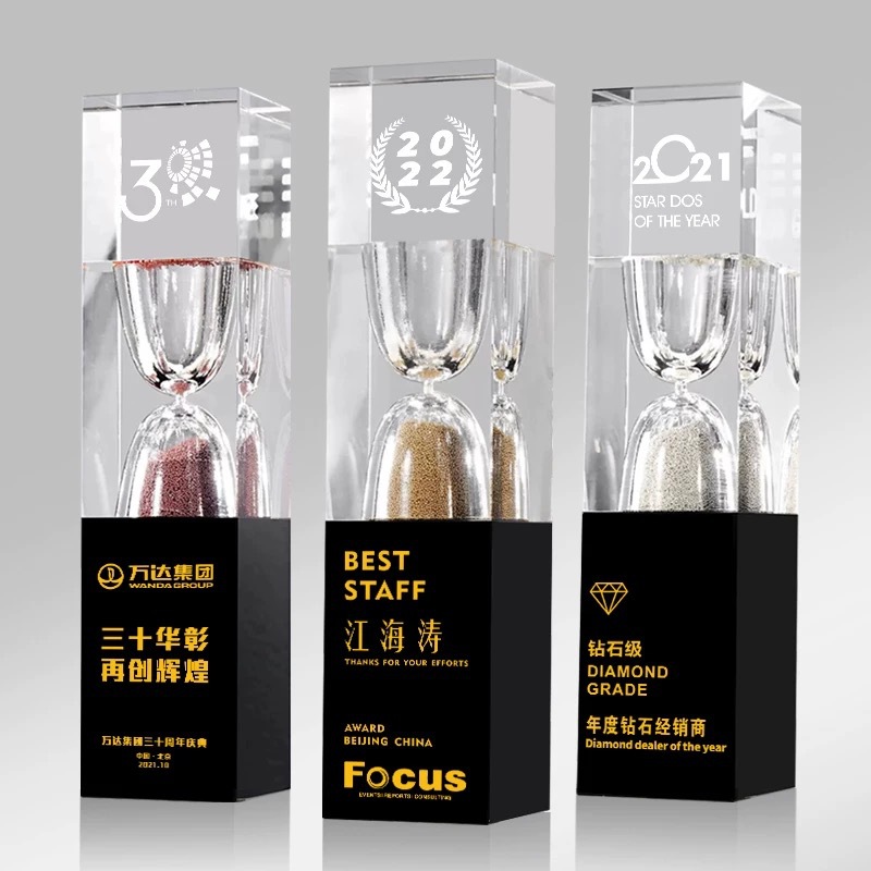 創意水晶砂時計トロフィーオフィス装飾優秀社員表彰年会トロフィー記念卸売り