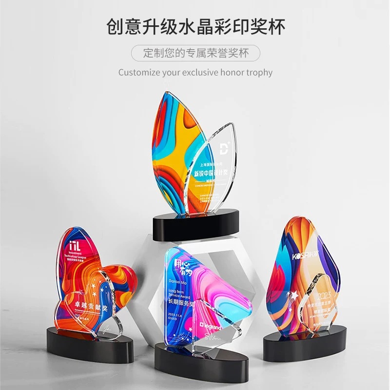 カラー水晶トロフィー企業年次総会販売冠亜季軍優秀社員チーム試合授賞創意彫刻