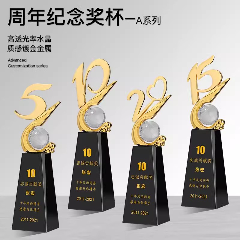 クリスタルデジタルトロフィー優秀社員五周年二十周年三十周年記念品金属ギフト年次総会