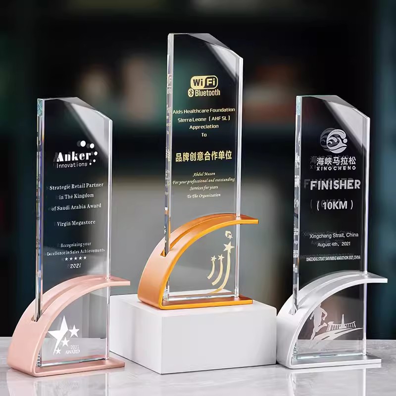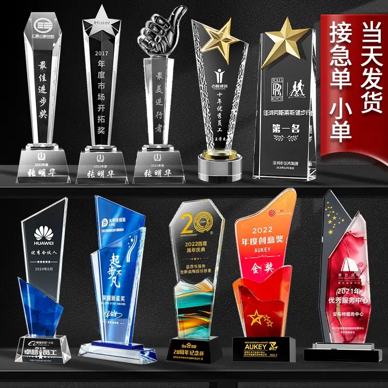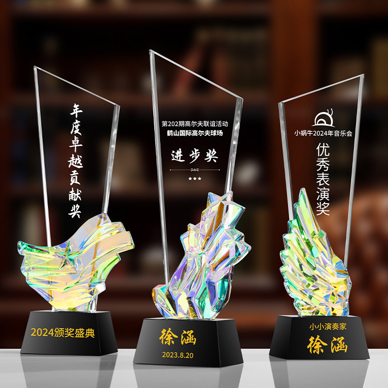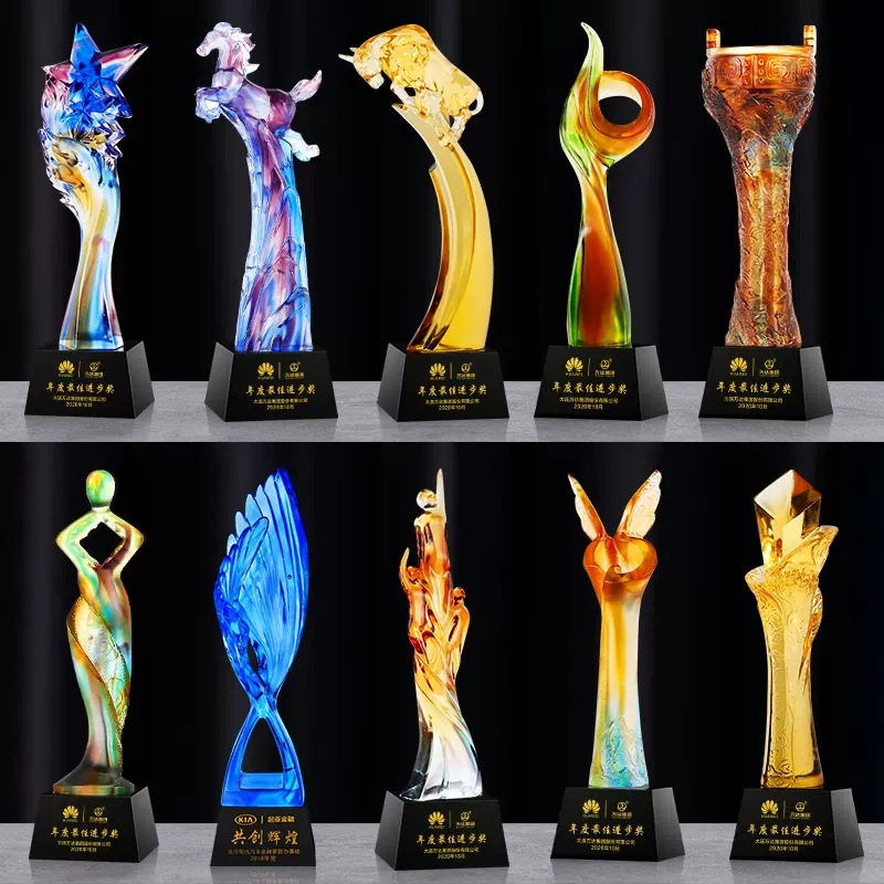高級古法瑠璃トロフィー制作年会優秀社員創意カラー水晶瑠璃トロフィー授賞記念