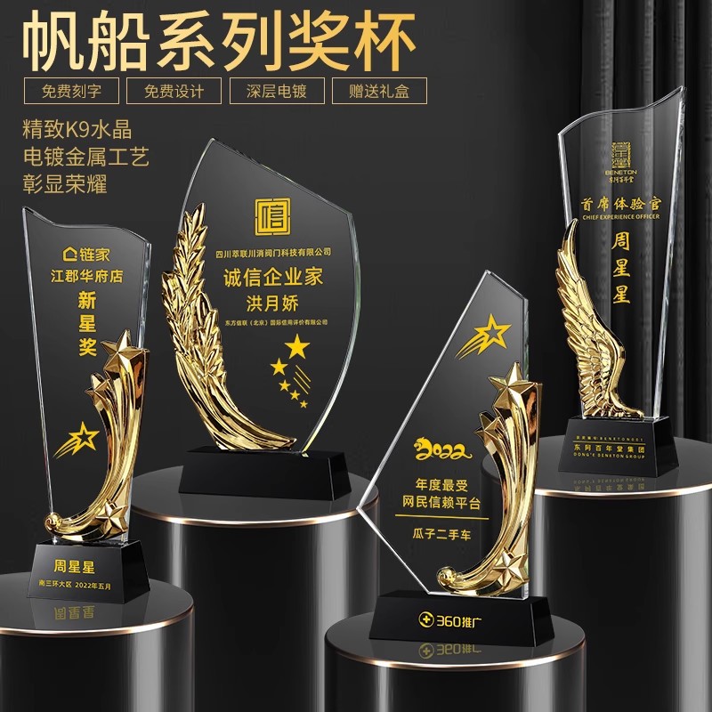 金属水晶トロフィー創意翼麦穂五角星メダル年次総会授賞社員記念品帆船彫刻