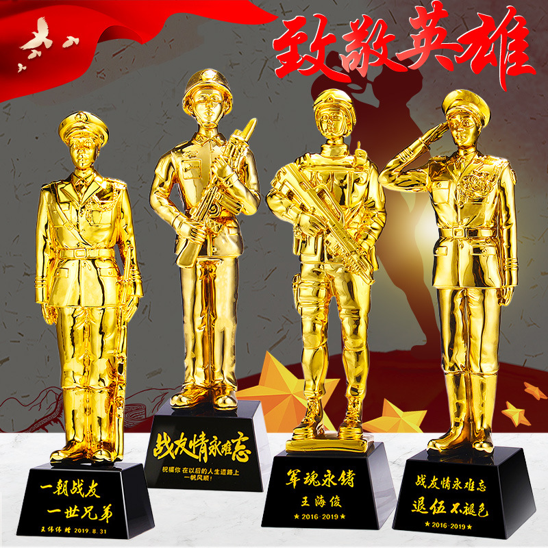 退役軍人トロフィー水晶樹脂金属トロフィー党員記念品八一戦友情彫刻記念