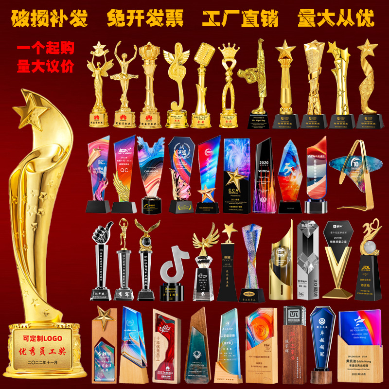 新型トロフィーメダル彫刻樹脂金属水晶トロフィー木製トロフィー年次総会優秀社員機構トロフィー