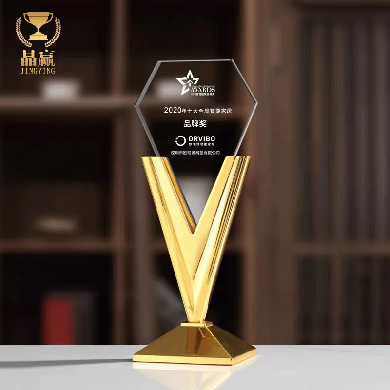 クリスタルトロフィー高級クリエイティブ金属v型勝利栄誉チーム従業員企業年次総会授賞大気メダル