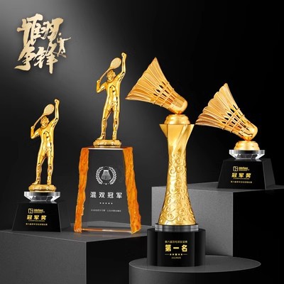 バドミントンのトロフィーのスポーツのトロフィーの試合の専用の運動会の学校のアイデアの新型の卸売りのアイデアの金属の水晶