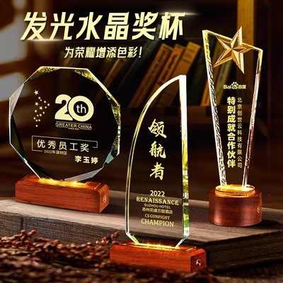 新型発光実木水晶トロフィー会社年次総会トロフィー創意周年退職退役授賞栄誉メダル