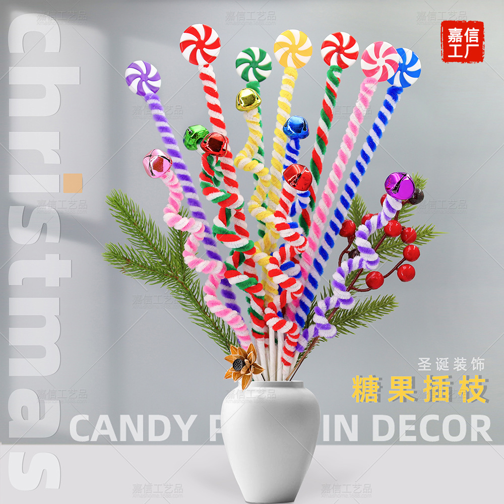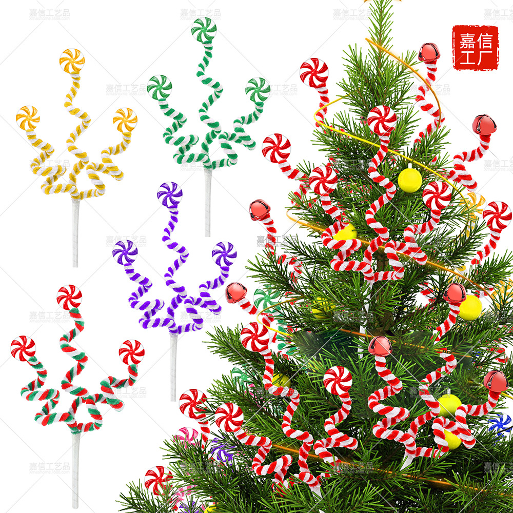 国境を越えた新製品クリスマスキャンディー挿し木紅白縞絨毛線鈴ねじれアメ花枝diy装飾