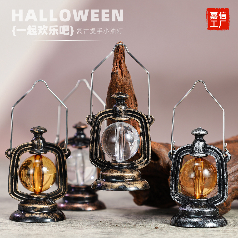 国境を越えた新しいレトロな小さなランプハロウィーン装飾アイデアハンドルライトプラスチック風灯シーンミニ装飾品