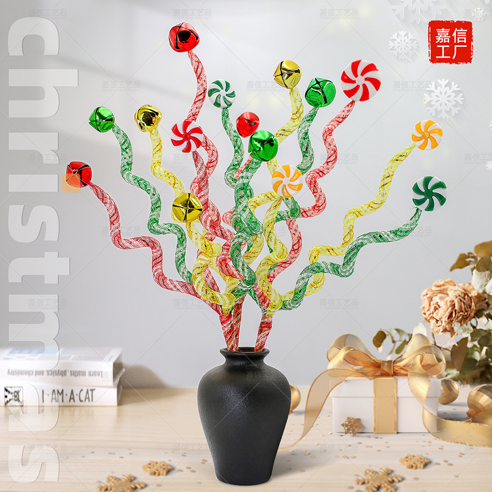 国境を越えた新製品クリスマス挿し木紅白キャンディー鈴花枝装飾ねじれアメ巻き枝花瓶木ストラップ