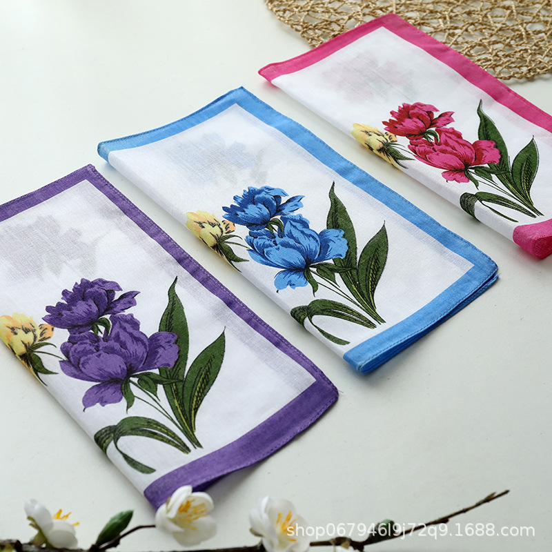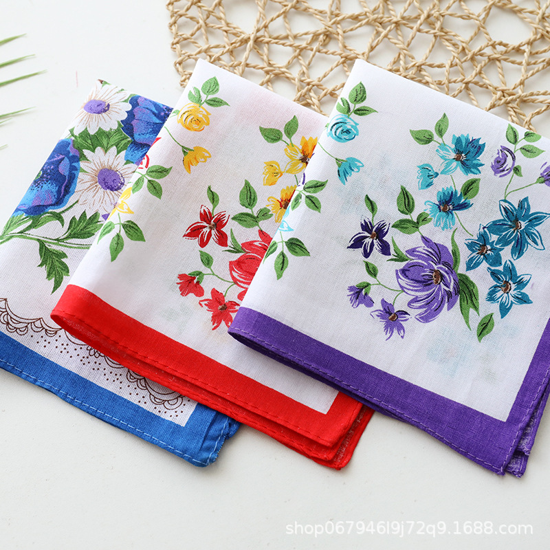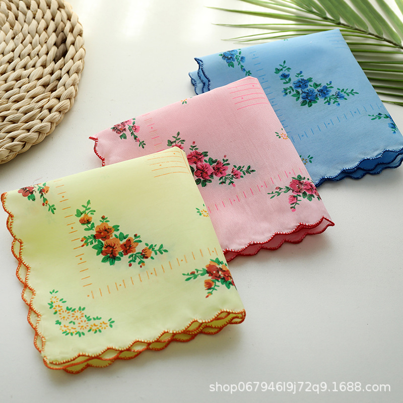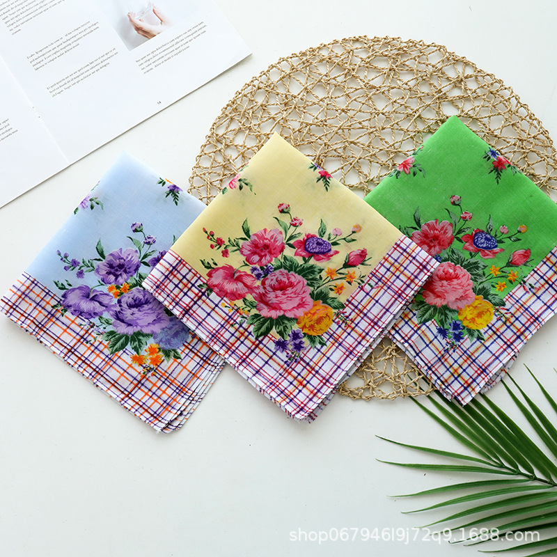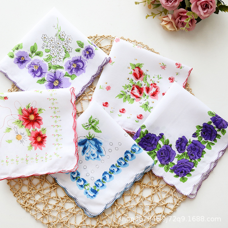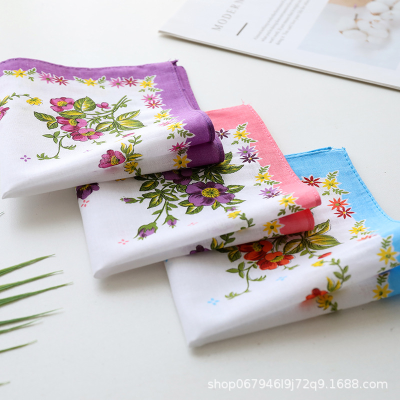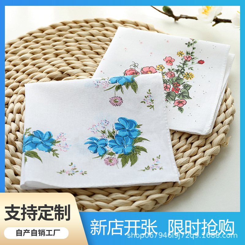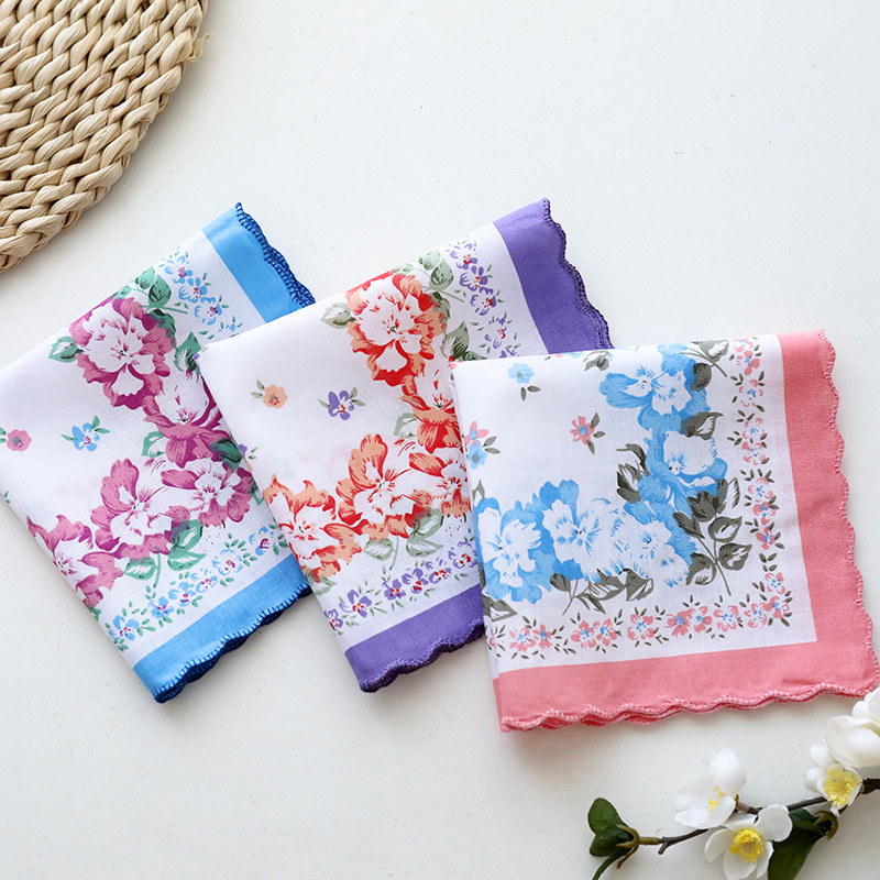 メーカー卸売り全綿女性ハンカチプリント女性ハンカチ復古吸汗爽やかなハンカチ女性プリント