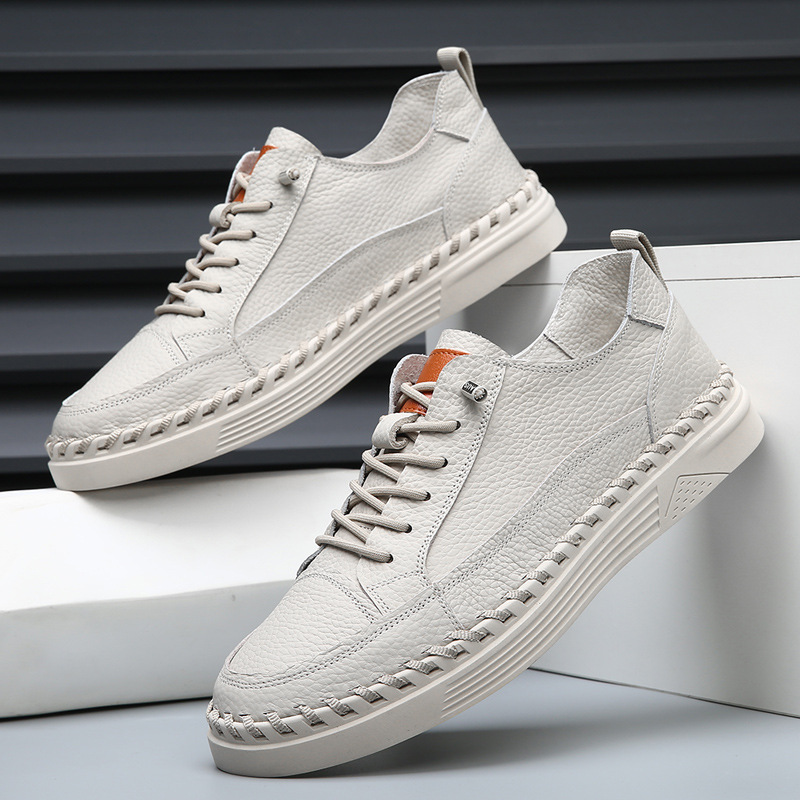 ヨーロッパ駅の板靴男本革牛革男性カジュアル革靴厚い底の白い靴