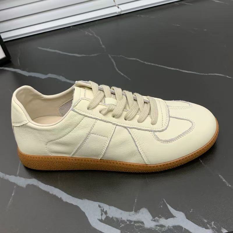 男性用の道徳訓練靴 2025 新しい夏の本革カジュアルソフトソール軽量レースアップ滑り止めフラットヒールカップルスタイルの女性用の白い靴