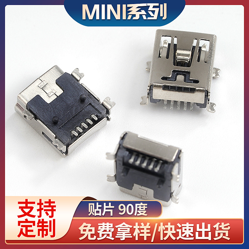 パッチミニusb母座MINI-5Pソケット90度インターフェイスmp3 mp4アクセサリ3充電口データポート