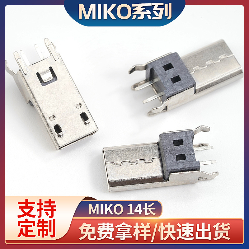 マイクロusb母座180度立挿し14mm長体mcirousbコネクタ縦型直挿し