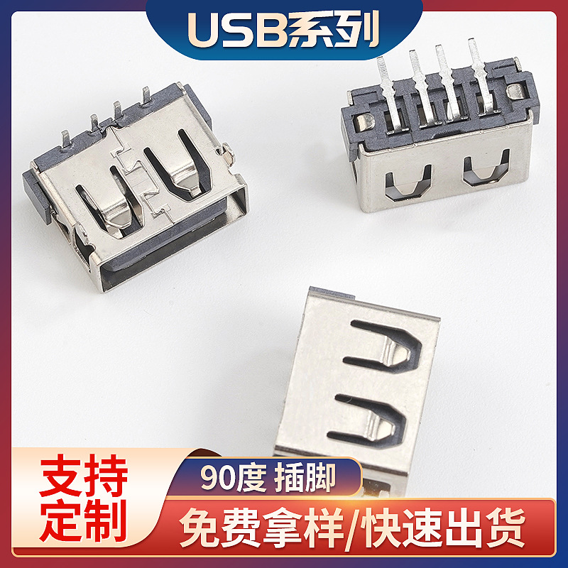 メーカー卸売りusb短体沈板90度角パッチピン直辺平口母座ソケットコネクタ