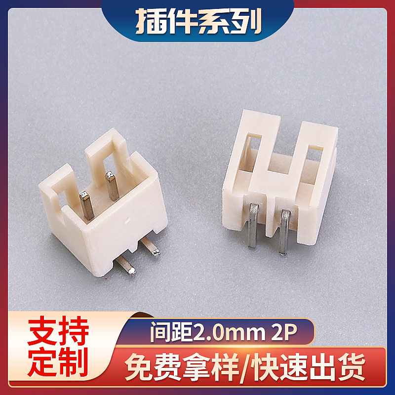 白い針座直挿しコネクタ間隔2.0mm縦型曲げ針短足編PH2.0-2P付直挿し