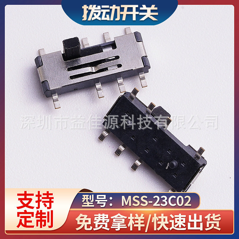 MSS-23C02ミニ8脚縦型パッチトグルスイッチ溝付き八脚三速微動スライドスイッチ