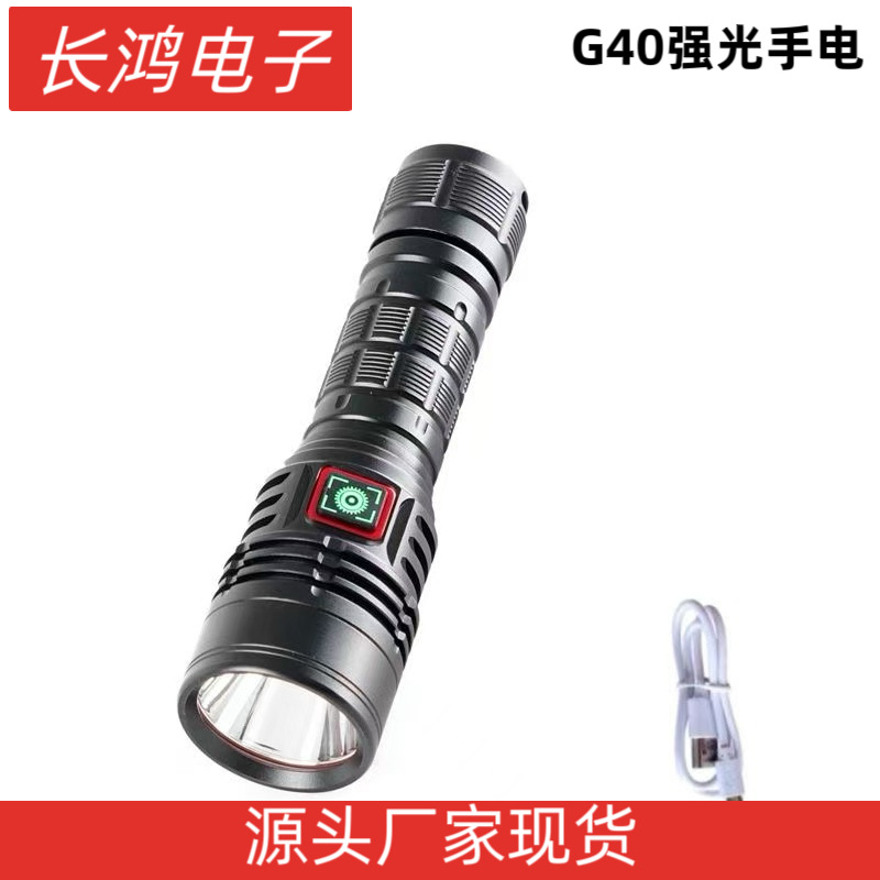 クロスボーダー ABS 強力な光懐中電灯 USB 充電電源表示家庭用屋外ポータブル夜釣りキャンプ強力な懐中電灯