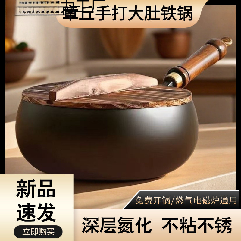 張丘大腹ミルクポット家庭用鉄鍋手作り中華鍋オープンノンコート鍛造平底ノンスティック中華鍋