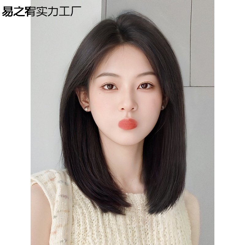女性用ショートヘア用フルウィッグ、年齢軽減用フル人毛、ナチュラル左分け人毛、鎖骨、新品フルウィッグセット