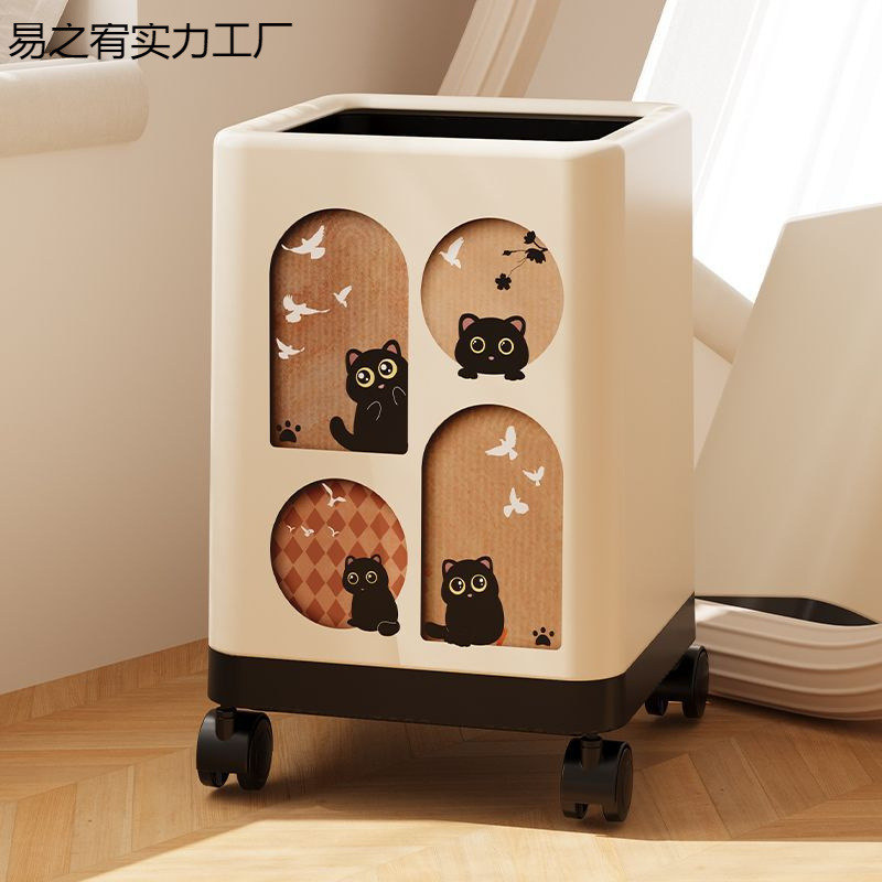 見栄えの良いアンティークキッチンゴミ箱、家庭用バスルーム、寝室のペーパーバスケット、大容量、かわいい、リビングルーム用の滑車付き