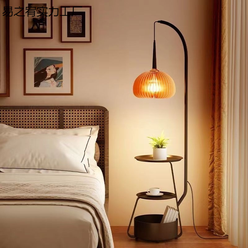 フロアランプ新型中古風客間高級感寝室無線充電スタンドベッドサイドテーブル置物一体