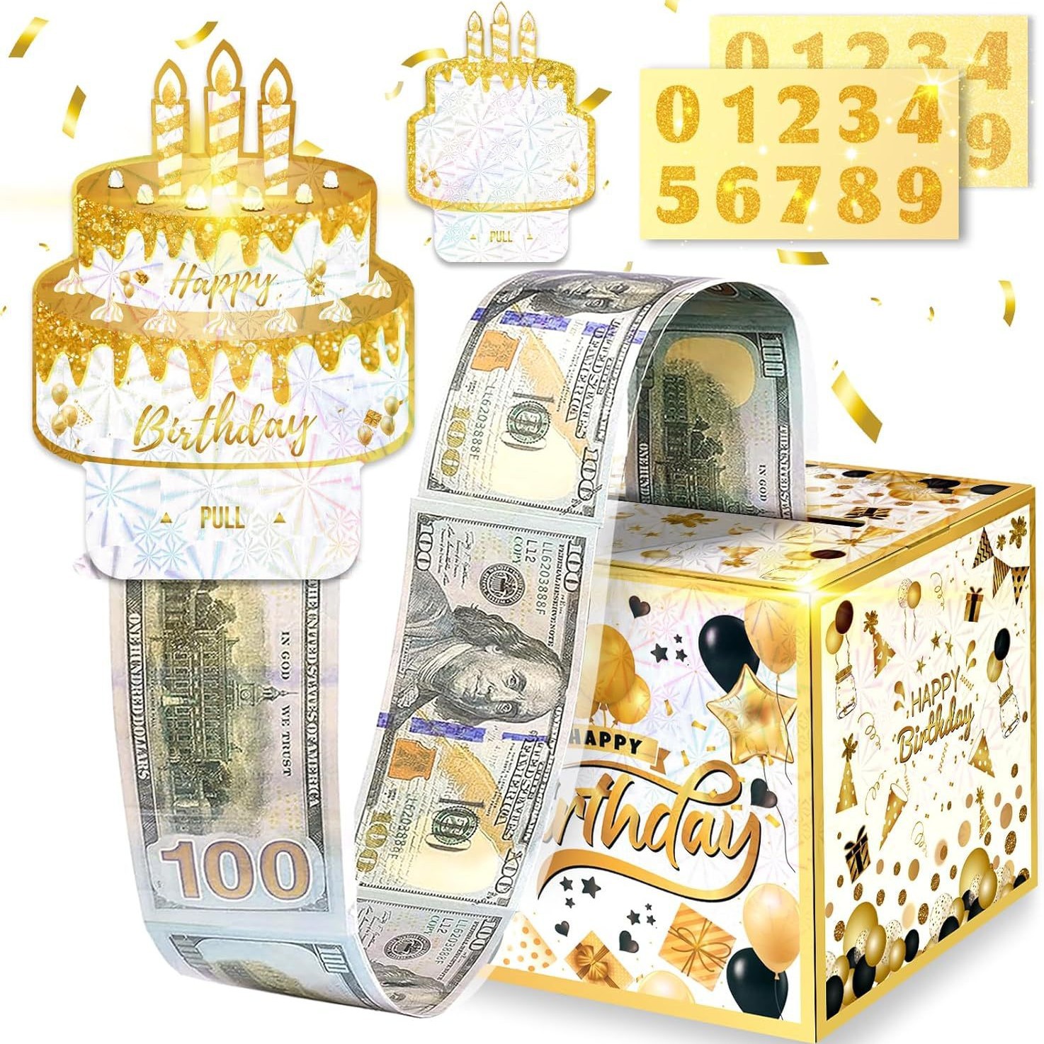 Sekam誕生日銭箱-引き出し式現金ギフトセット、100個袋付き、ギフト財布 (