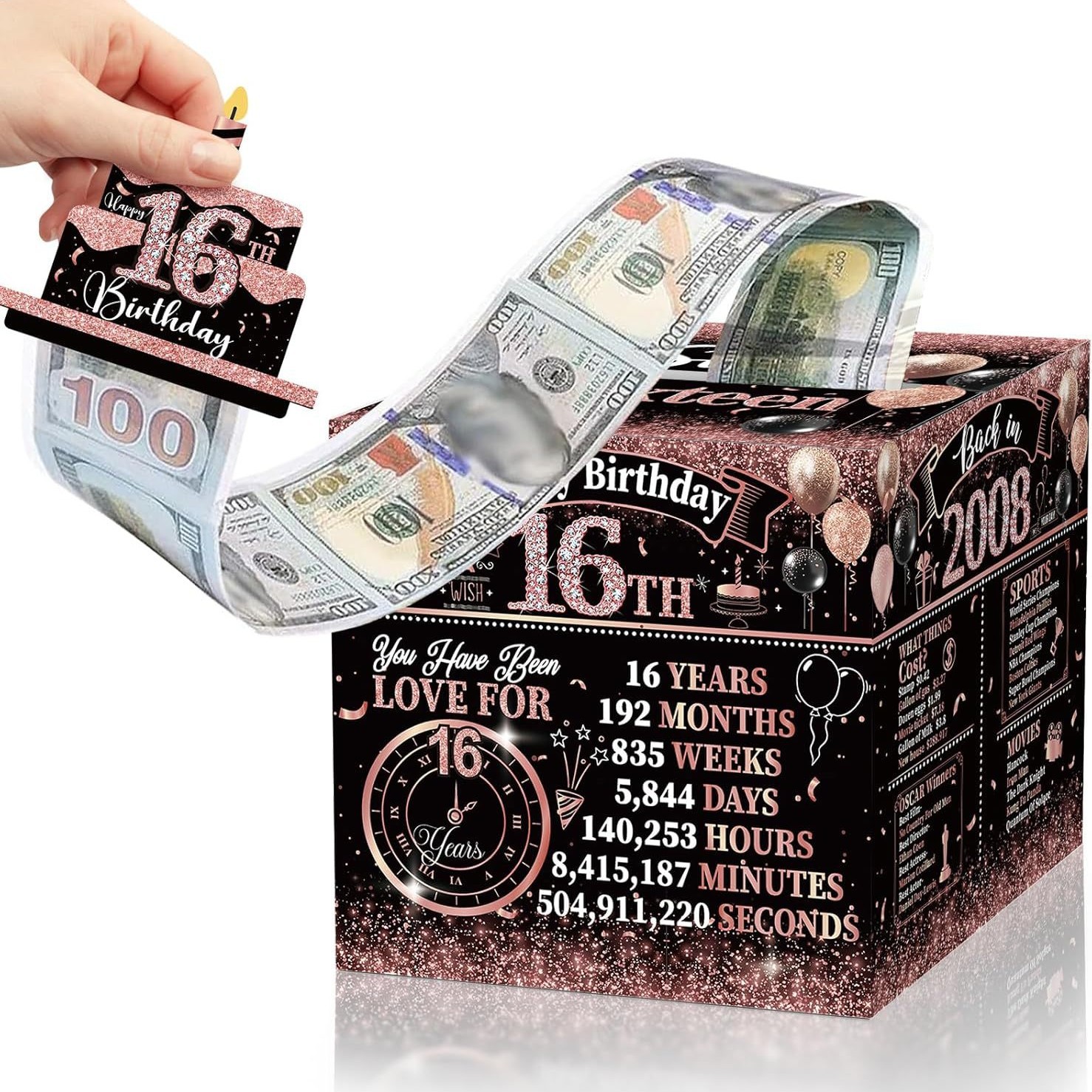 Sereliy Sweet 16歳の誕生日装飾女の子お金ギフトボックス現金ギフト用プル、ブラックピンクお金