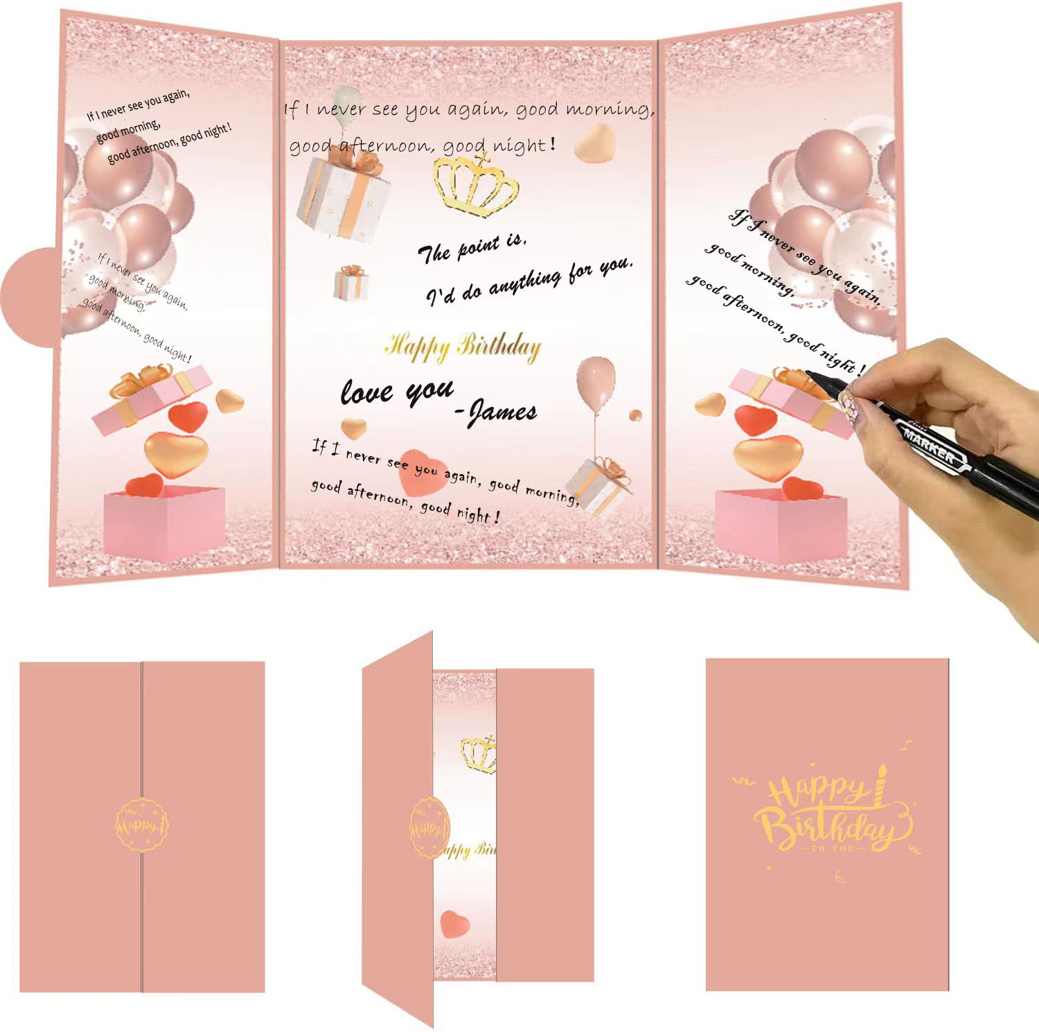 爆. 金クロスボーダー誕生日卒業退職テーマ手書きサプライズ紙パーティー大グリーティングカードプレゼントDIYデジタルシール