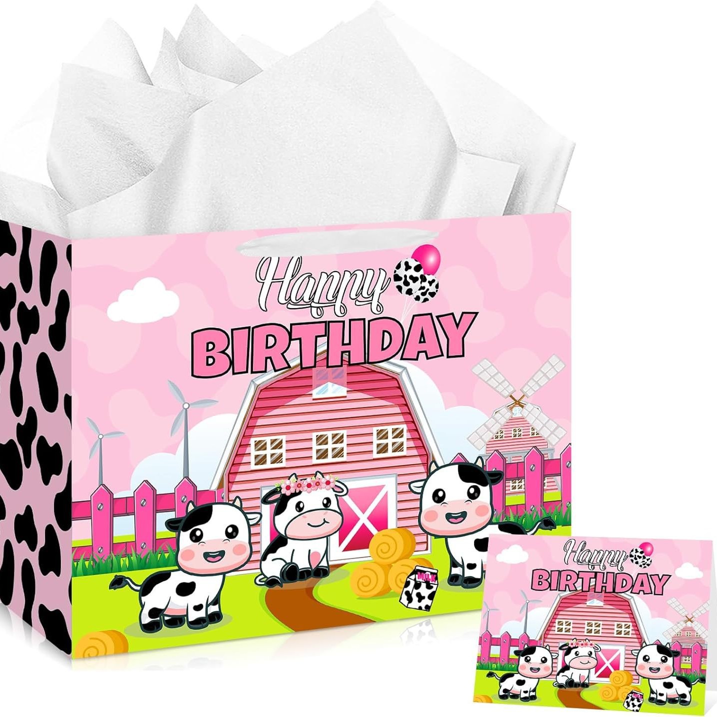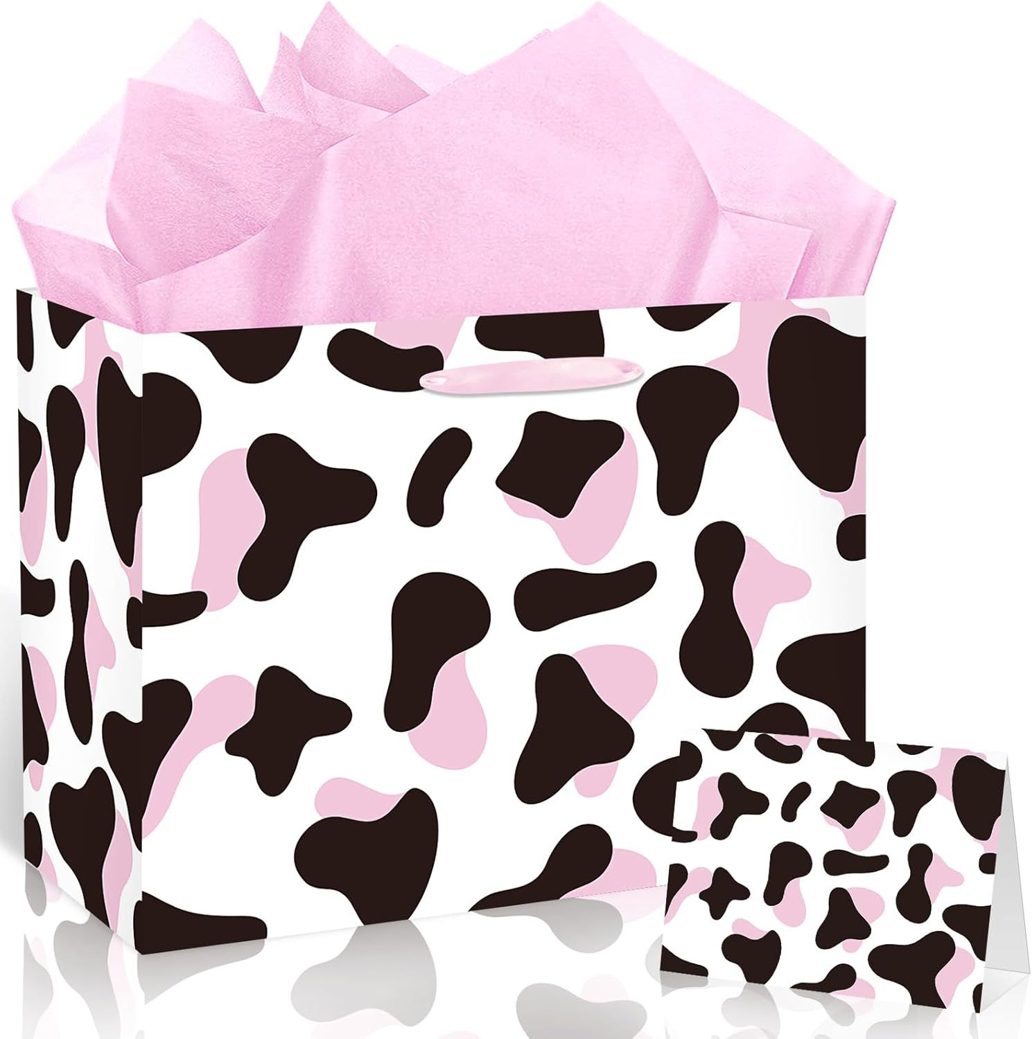 Large pinkcowパーティー・ファビーズ・バッグ・Cow印刷・ギフト・バッグ・ウィズ・ティーズ