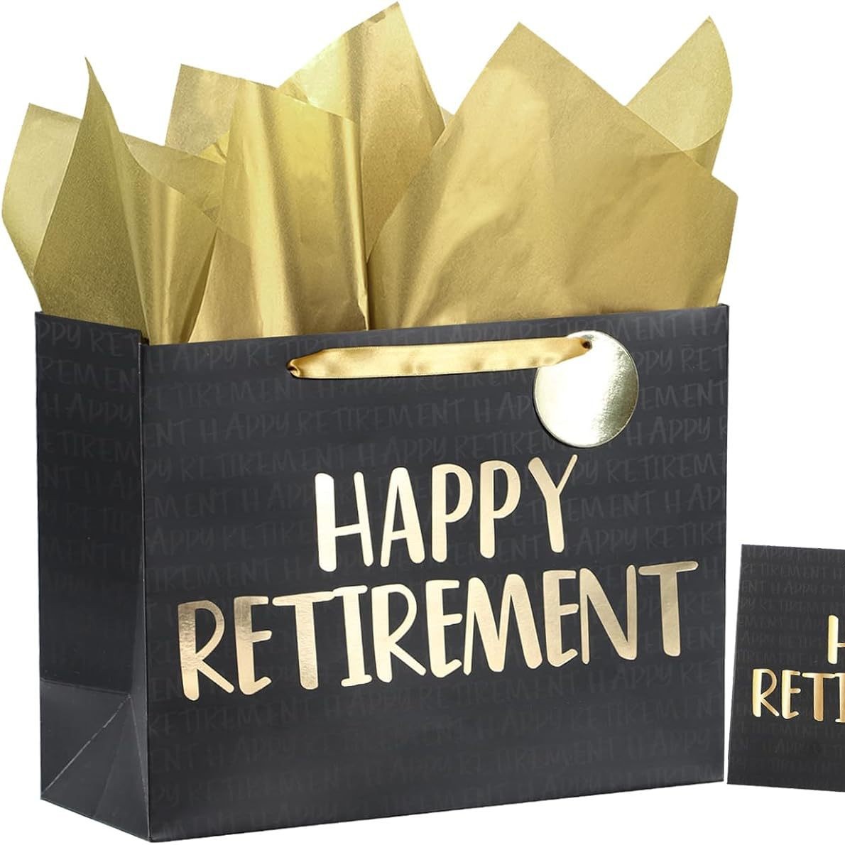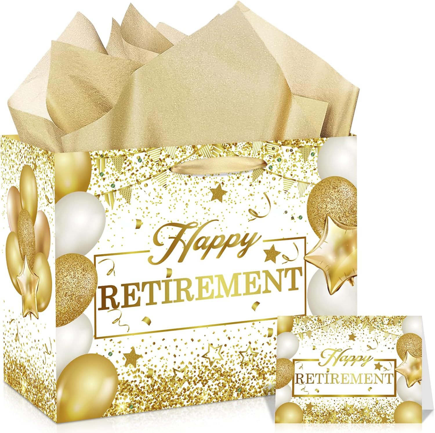 WRAPAHOLIC 13インチ (約33.0センチ) の大型退職ギフトバッグ、カードとティッシュ付き