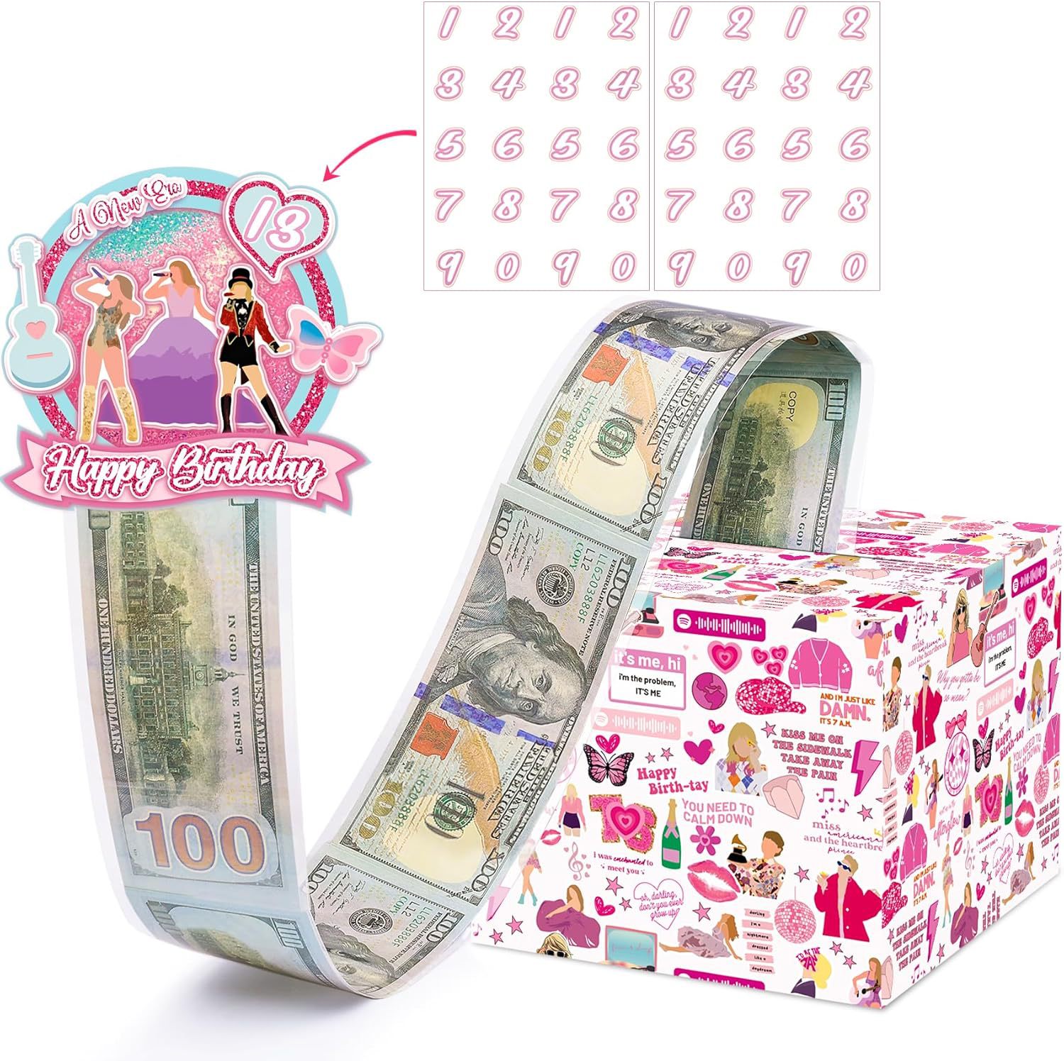 Meiidoshine 誕生日マネーボックス DIYステッカー付き、あらゆる年齢の女の子や女性に最適、ピンクのギフトボックス