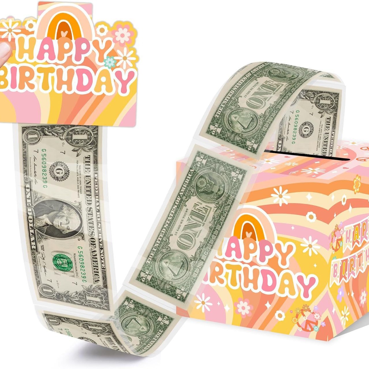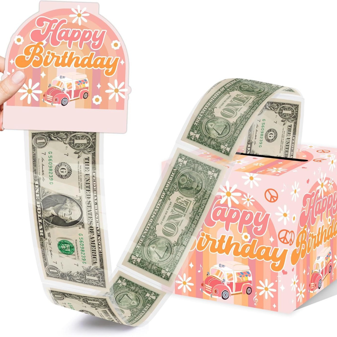 Groovy誕生日パーティープレゼント、ヒッピー誕生日おめでとうお金ギフトボックス、おしゃれな現金ギフトボックス、時