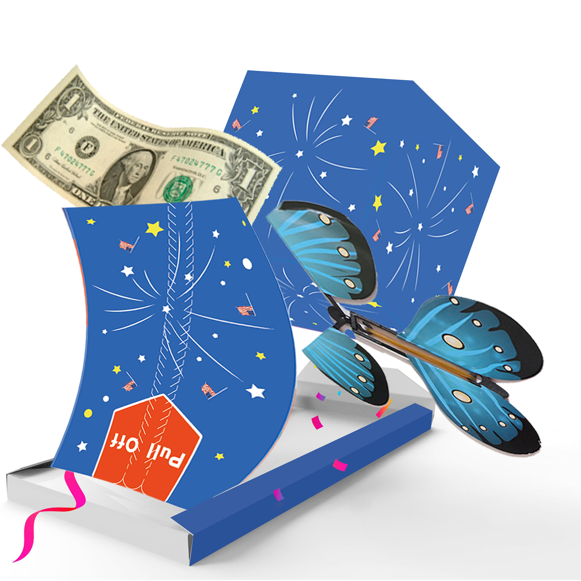 蝶のサプライズ誕生日パーティーの装飾はお金を引き出します。