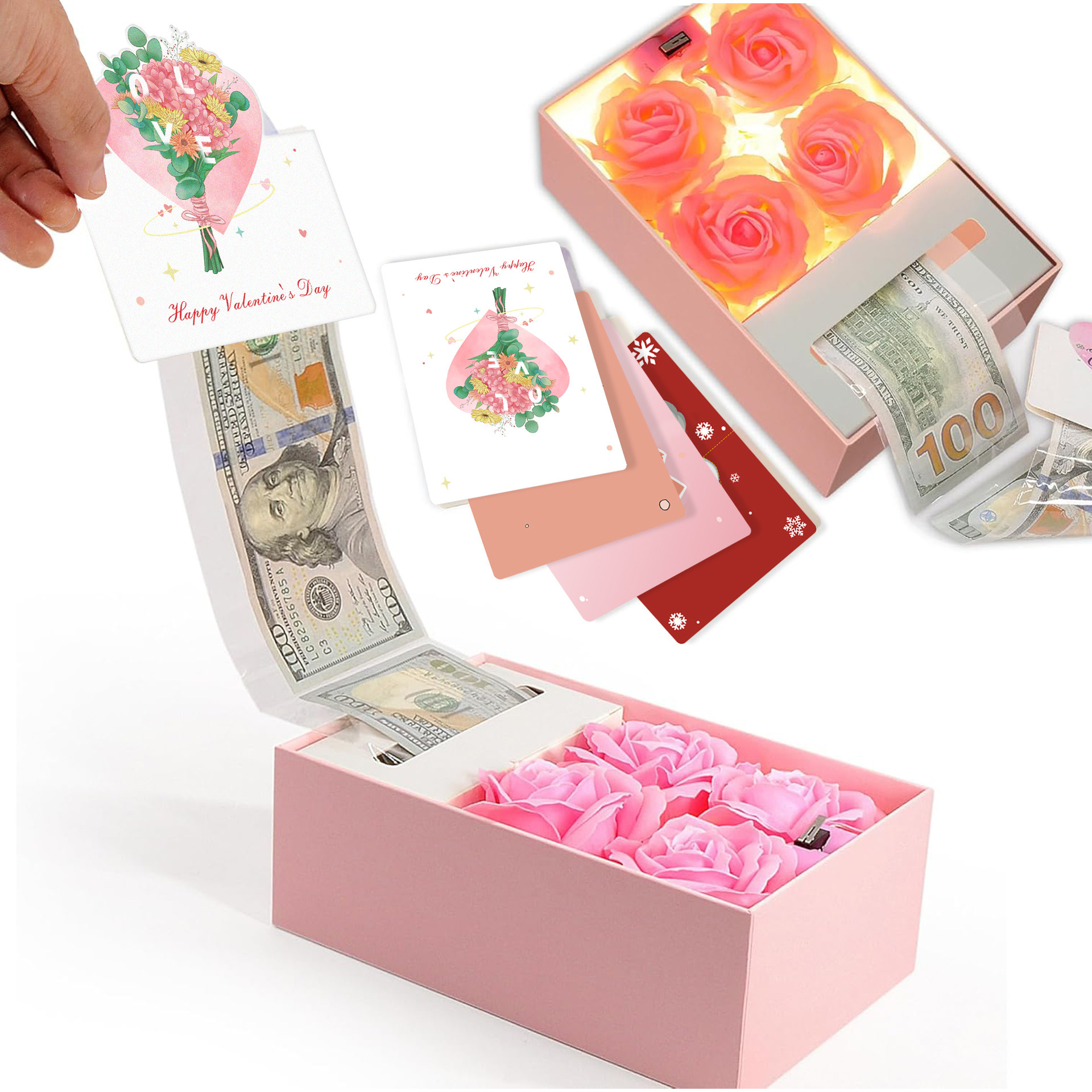 現物バレンタインデー現金銭箱ピンクの財布現金ギフトカード付きバレンタインデーサプライズ