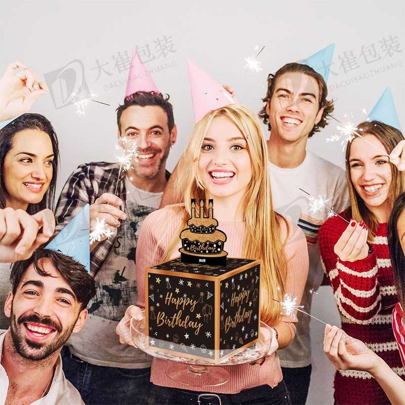 国境を越えた貿易サプライズ誕生日パーティー装飾紙箱雰囲気演出小道具ブラックゴールドお金引き出しボックス卸売ギフトボックス
