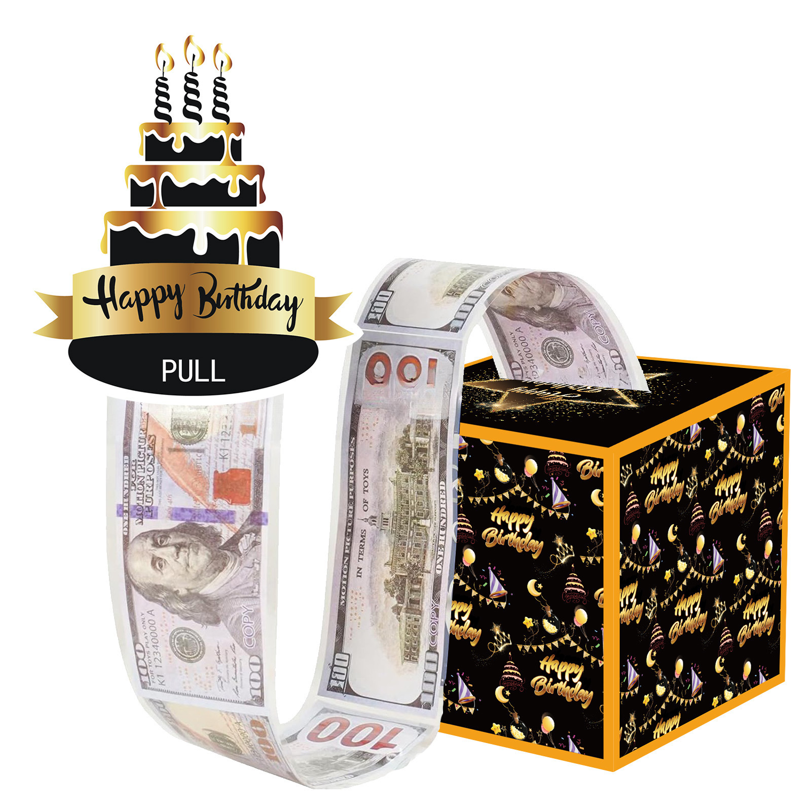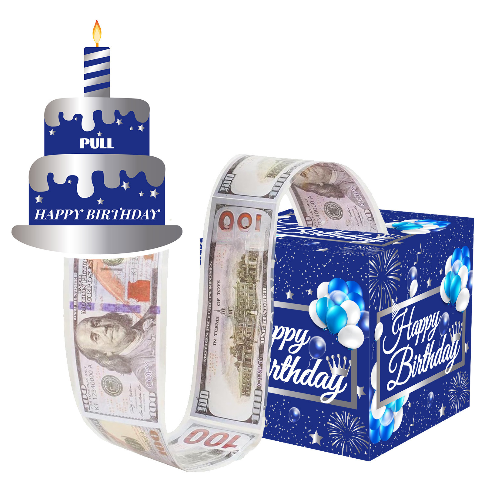 スポット誕生日テーマサプライズ紙箱ハッピーバースデー雰囲気小道具青銀紙幣箱