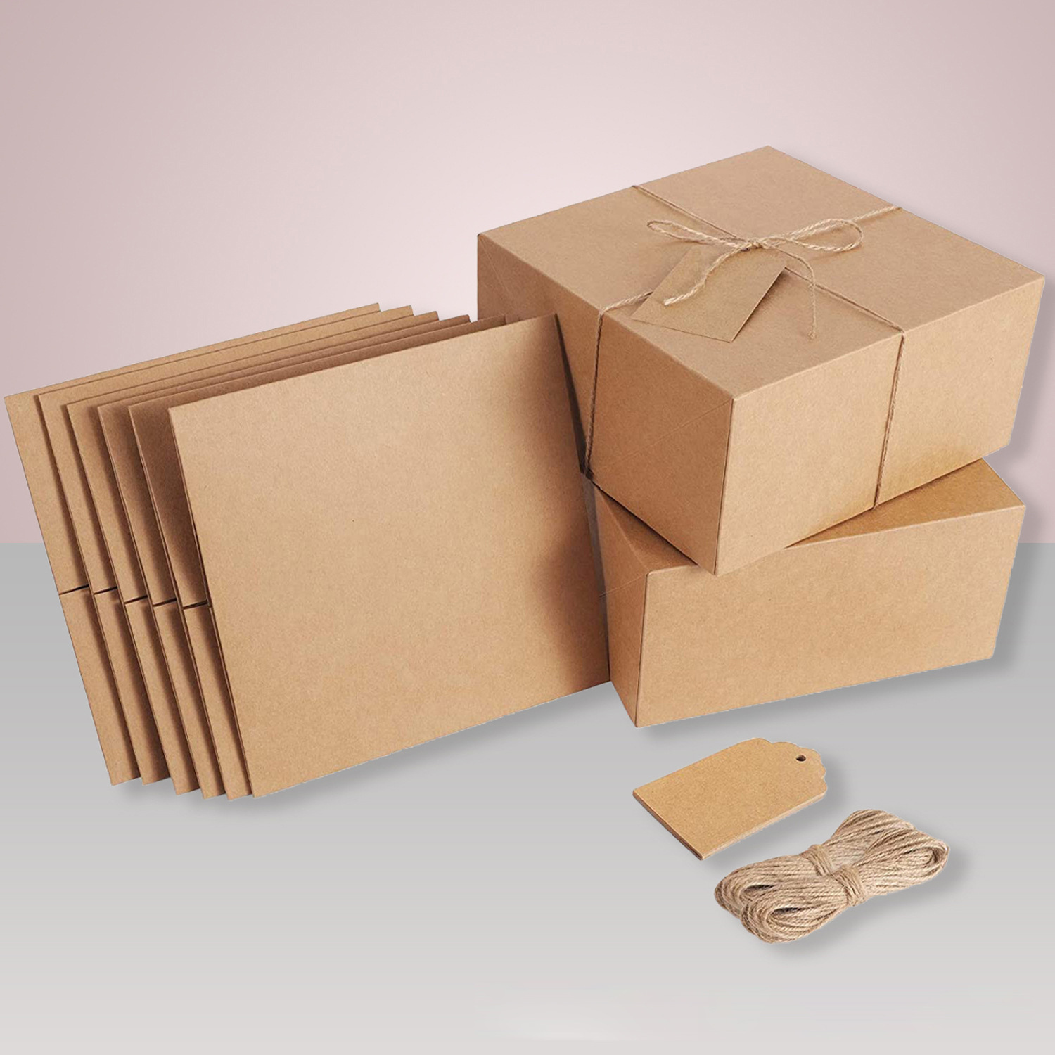 国境を越えた人気の既製ギフトボックスパーティークラフト紙ギフト包装麻ロープタグ付きホワイトカードスクエアボックス卸売