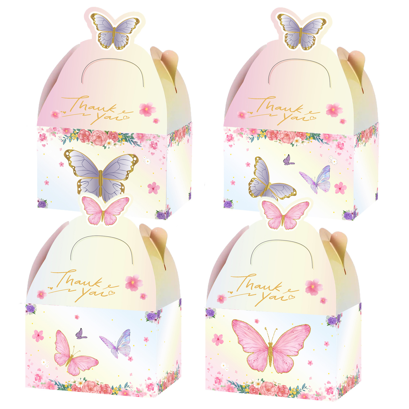 Nezyo 24 個蝶パーティー記念品キャンディボックス、ピンクと紫の蝶花柄キャンディボックス紙ギフト