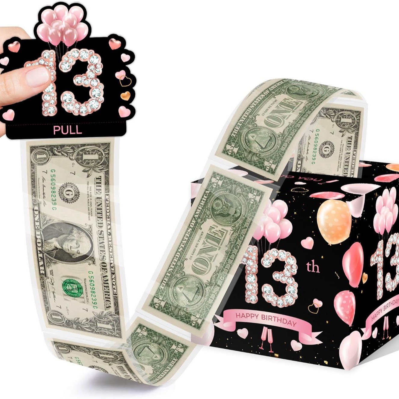 Azbuk 13 歳の誕生日現金金庫、男の子と女の子の誕生日サプライズボックス、現金ギフト付き、ローズ