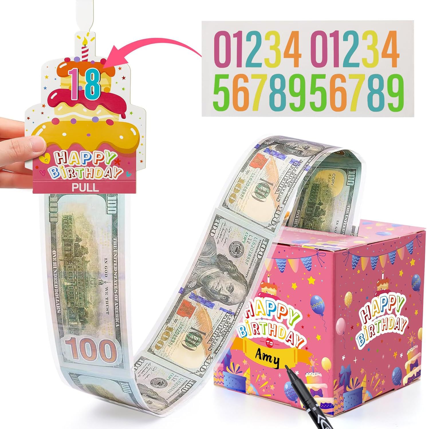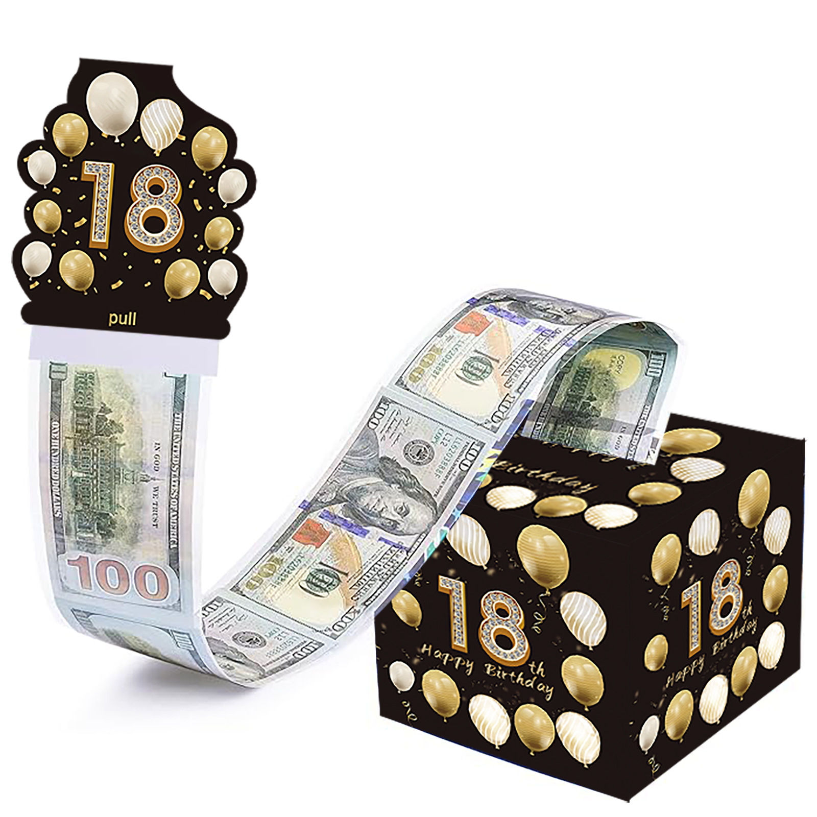 アズブクのかわいい18歳の誕生日プレゼント、男の子と女の子向け、誕生日のお金入れ、引き出し付き現金ギフト、18歳のギフトボックス