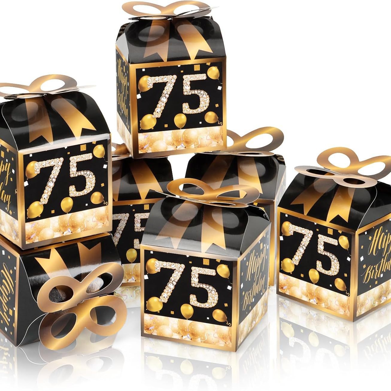 Qonmpcvu スクエアギフトボックス、ブラックとゴールドの装飾ボックス、75歳の誕生日ギフトバッグ、パーティーの記念品