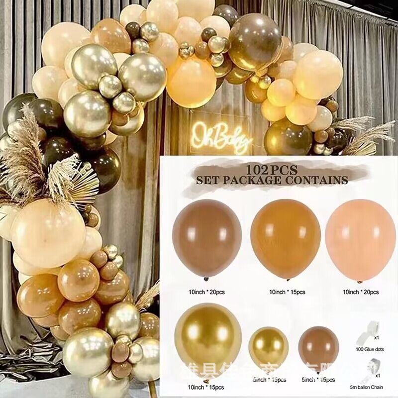 クロスボーダーバルーンチェーンセット洗礼誕生日ウェディング背景配置茶色コーヒー肌色テーマパーティーバルーンチェーン