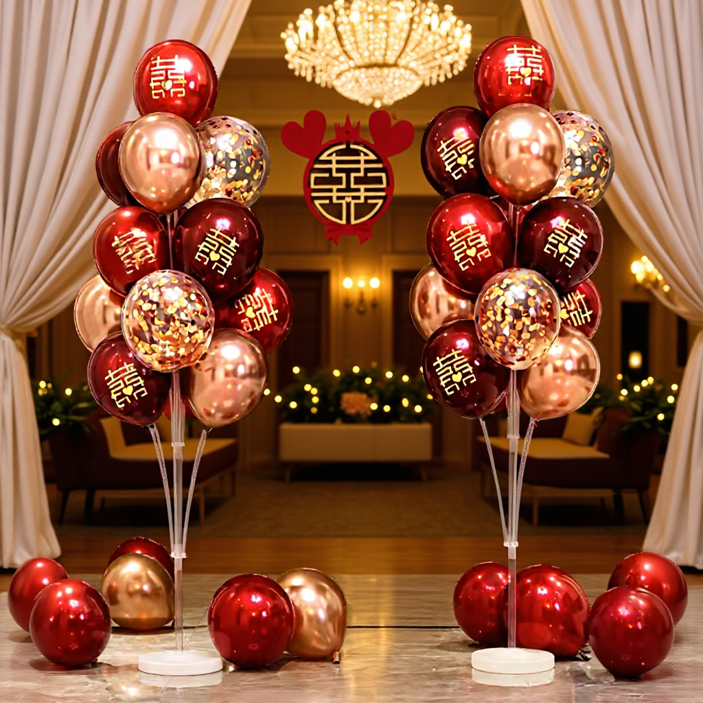 結婚喜字kt板愛バルーンチェーンアーチ装飾結婚式シーン柱配置吾家喜喜字