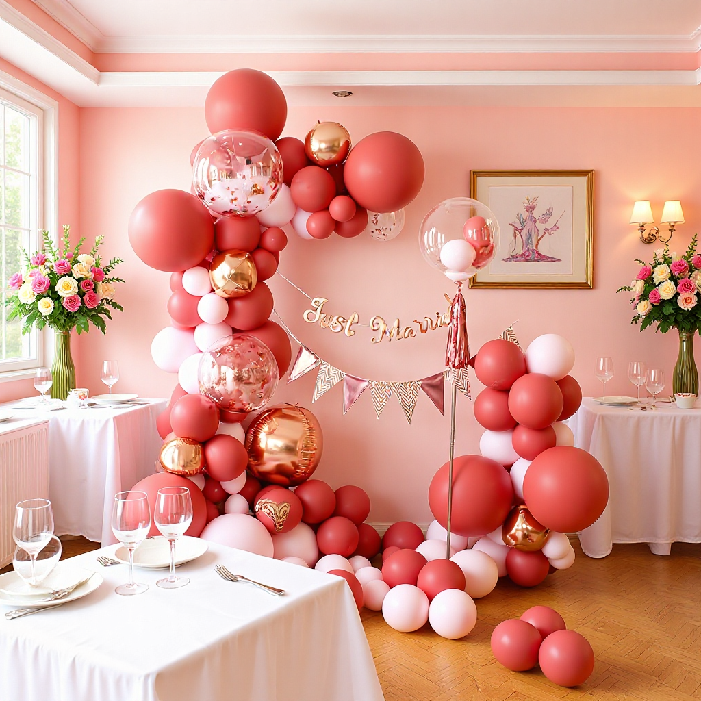 結婚部屋の風船が男性の結婚式を飾っています。