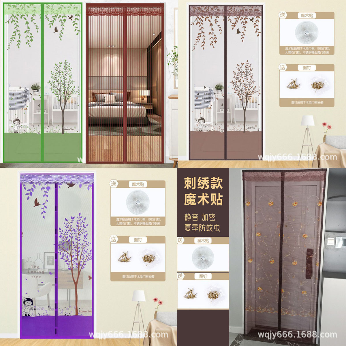 在庫一掃マジックテープ磁気カーテン夏防蚊家庭用寝室糸カーテン静音自動閉鎖暗号網紋