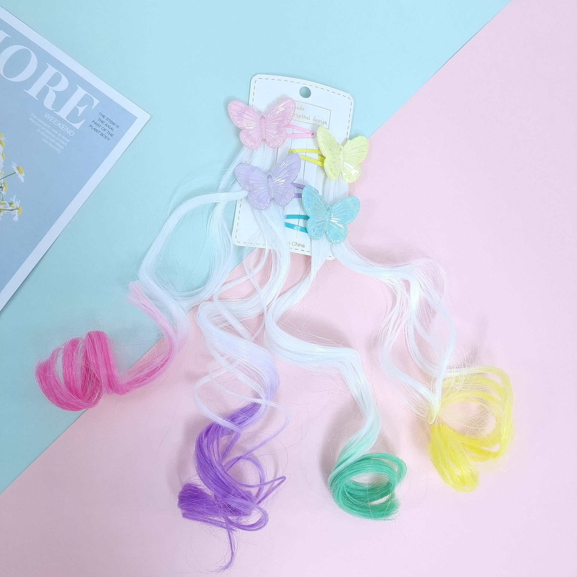 子供用ウィッグ4点セット蝶子供用ヘアピンプリンセススイートベビーヘアアクセサリーヘアピン巻き毛変色ヘアピース