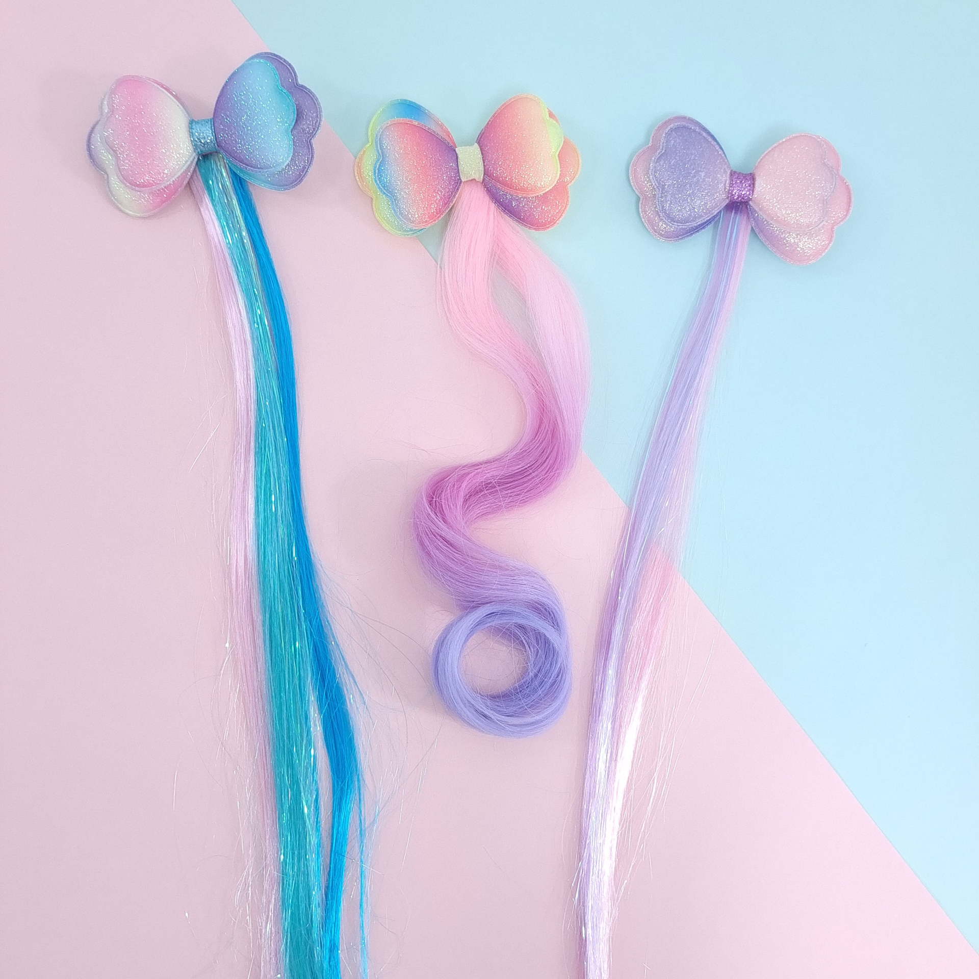 メーカーの卸売りの新型の王女の細いフラッシュの子供の髪飾りの2層の蝶結びのカラーのグラデーションの赤ちゃんの髪はかつらを挟みます。