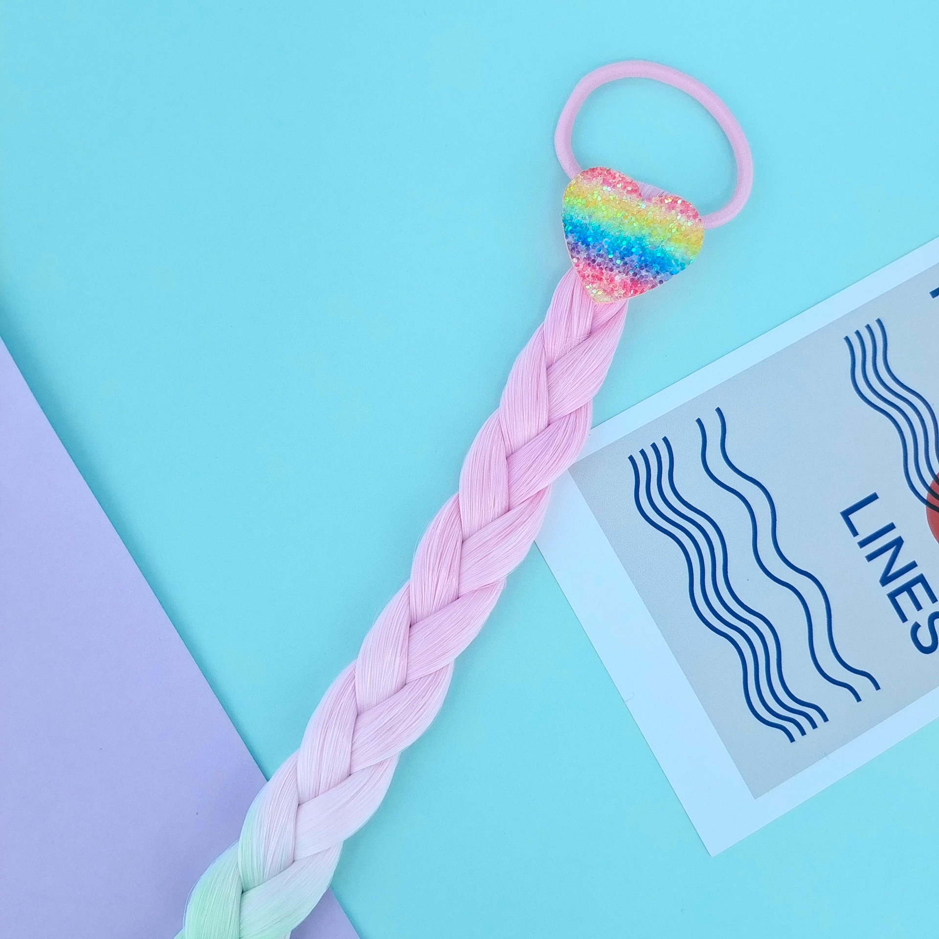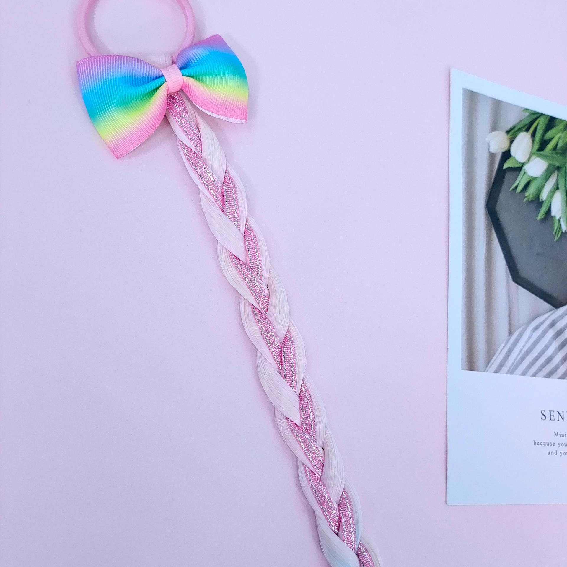 新しいかつらのお下げの子供の髪飾り虹のネギの皮の桃の心の子供の髪輪の韓国版の王女の子供の皮の筋